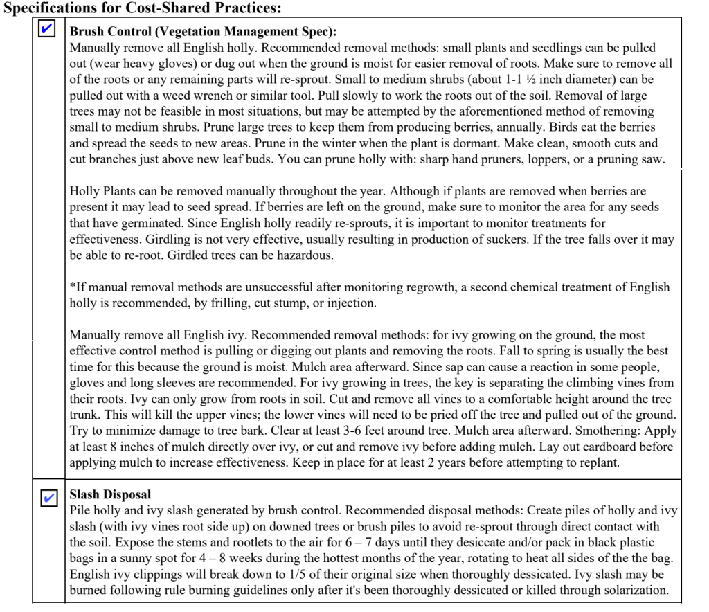 The Forester that helped me write up my land management plan also helped me submit an application to WA State’s DNR Cost Sharing Program. The DNR will split the cost of invasive species removal (brush control in the spec below) and slash disposal. This includes payment for labor, so I’m now signed up to be a Vendor for WA State.