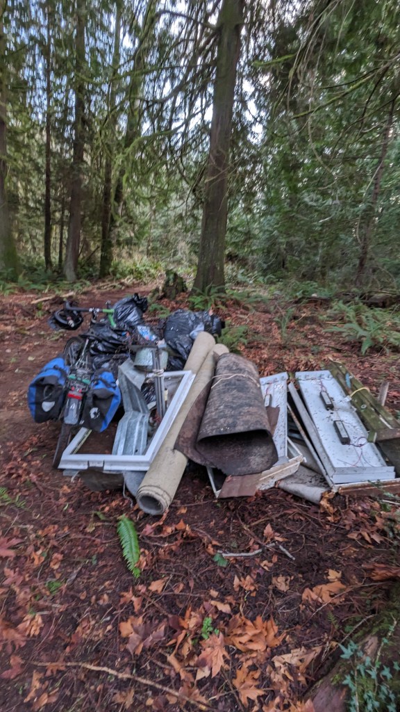 Garbage hauled out of the woods from the shed and overgrown encampments weighed in at 1000 lbs.
