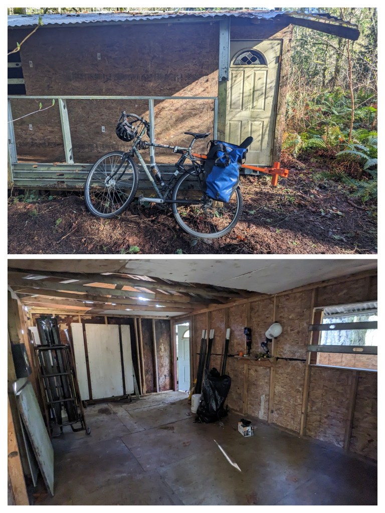 The shed had a lot of trash and moldy carpet that I hauled out on foot.